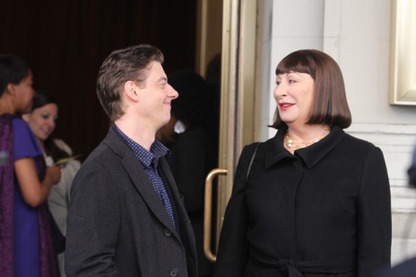 Anjelica Houston And Christian Borle On The Set Of “Smash”