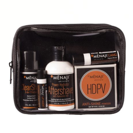 Menaji Skincare “David” Camera Ready Set. Urban Camouflage (shade of choice), HDPV Anti-Shine Powder (shade of choice), ClearShave 3-in-1 formula. Power Hydrator Aftershave, Lip Agent with SPF 15 Expandable Dopp Kit. $103 Buy Here: menaji.com