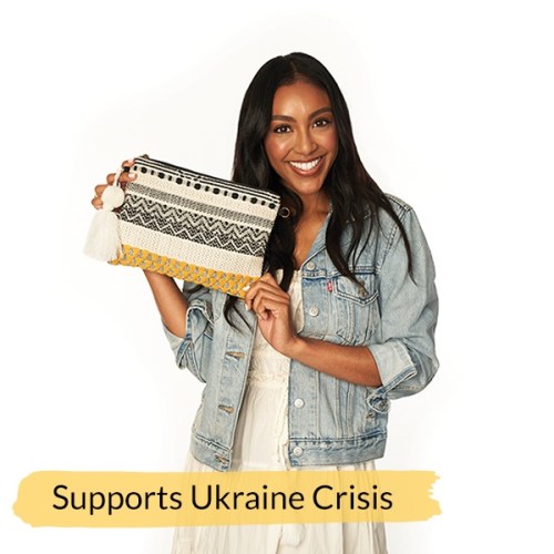 World Vision “All Things Possible” Crossbody Purse by Tayshia Adams. TV Host and Multimedia personality Tayshia Adams designed this chic bag with proceeds supporting the people of Ukraine. Handcrafted by fair-trade artisans in India, this purse carries essentials in style—while your donation provides essential care for vulnerable families. Measures 8 X 11 with a 29 inch strap. $120 Shop Here: donate.worldvision.org
