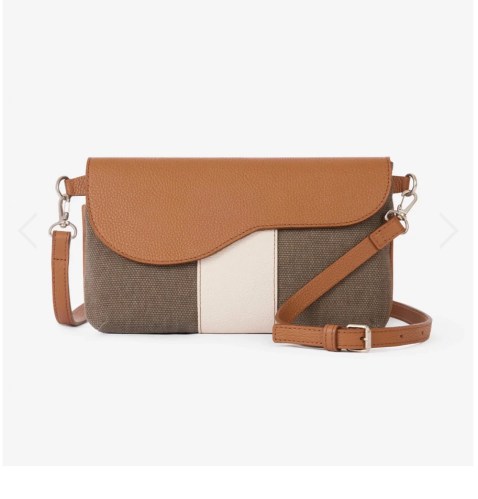 Oughton Paddock Crossbody Bag in Vintage Canvas. Textured 100% cotton canvas body, full-grain pebbled leather flap, center stripe, and strap, and signature saddle flap design with magnetic closure. $175 Shop Here: oughton.com