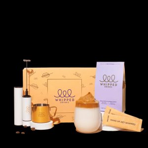 Whipped Drinks Whip Kit. Make perfectly whipped coffee in just 60 seconds. Kit includes a high speed brother with batteries included, gilded frothing jug, 10 pack of whip sticks, and a recipe book. $49 Shop Here: whippeddrinks.com