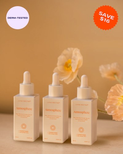 Luna Nectar Atmosphere Hair Density 3-Pack. Enhance hair density and wellness from root to tip, and bring your scalp and hair lustre back to balance with Atmosphere Hair Density & Scalp Serum, a nutrient-rich serum. $140 Shop Here: lunanectar.com