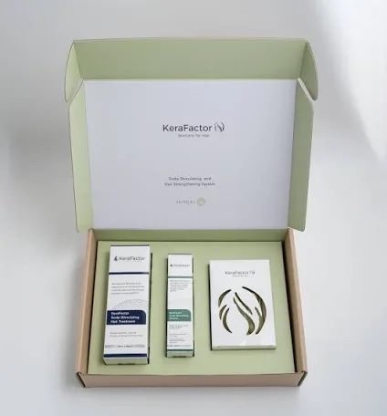Kerafactor Combo System Hair Treatment Set. Includes: Scalp stimulating lotion, scalp stimulating hair treatment, and scalp stimulating wet & dry brush. Helps with hair loss due to androgenic alopecia and telogen effluvium. Proprietary keraFactor formula, kerafactor with nanofluorosomes. $218 Shop Here: shop.mykerafactor.com