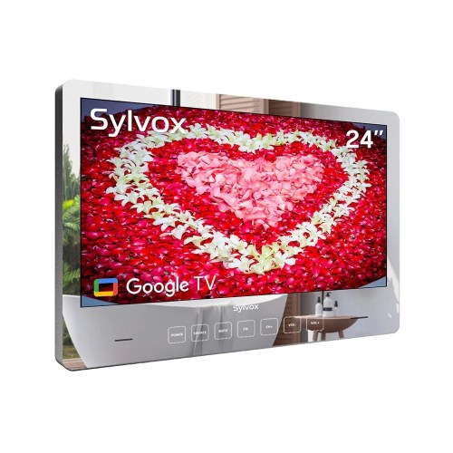 Sylvox 24″ Waterproof Smart Mirror Bathroom TV. Humidity Resistant, Smart Full HD LED Display, Built-In Google Smart TV, doubles as a mirror when turned off. $599 Shop Here: sylvoxtv.com