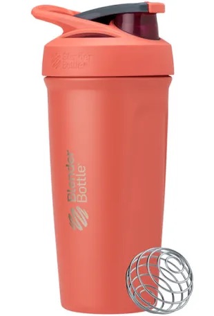 Blenderbottle Strada Insulated Stainless Steel Protein Shaker in Grapefruit. Keeps drinks cold for up to 24 hours. The bottle’s spill-proof locking lid opens and closes with the touch of a button. 24oz. $24.99 Shop Here: blenderbottle.com
